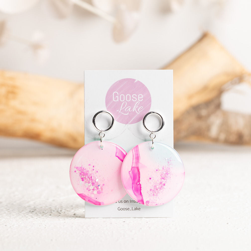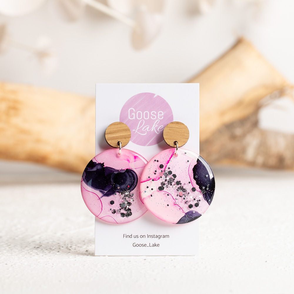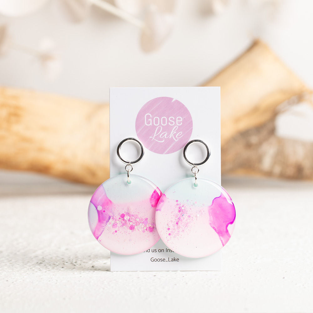 Our unique alcohol ink earrings in many different variations.